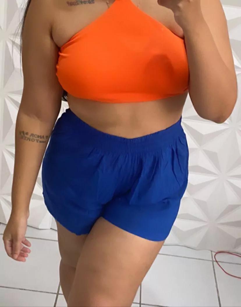 SHORTINHO DE VISCOSE SIMPLES, COM ELÁSTICO NA CINTURA.